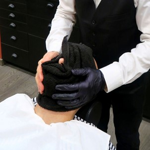 PERFILADO CON TOALLAS CALIENTES para un mayor DURACION y DEFINICION de la barba.